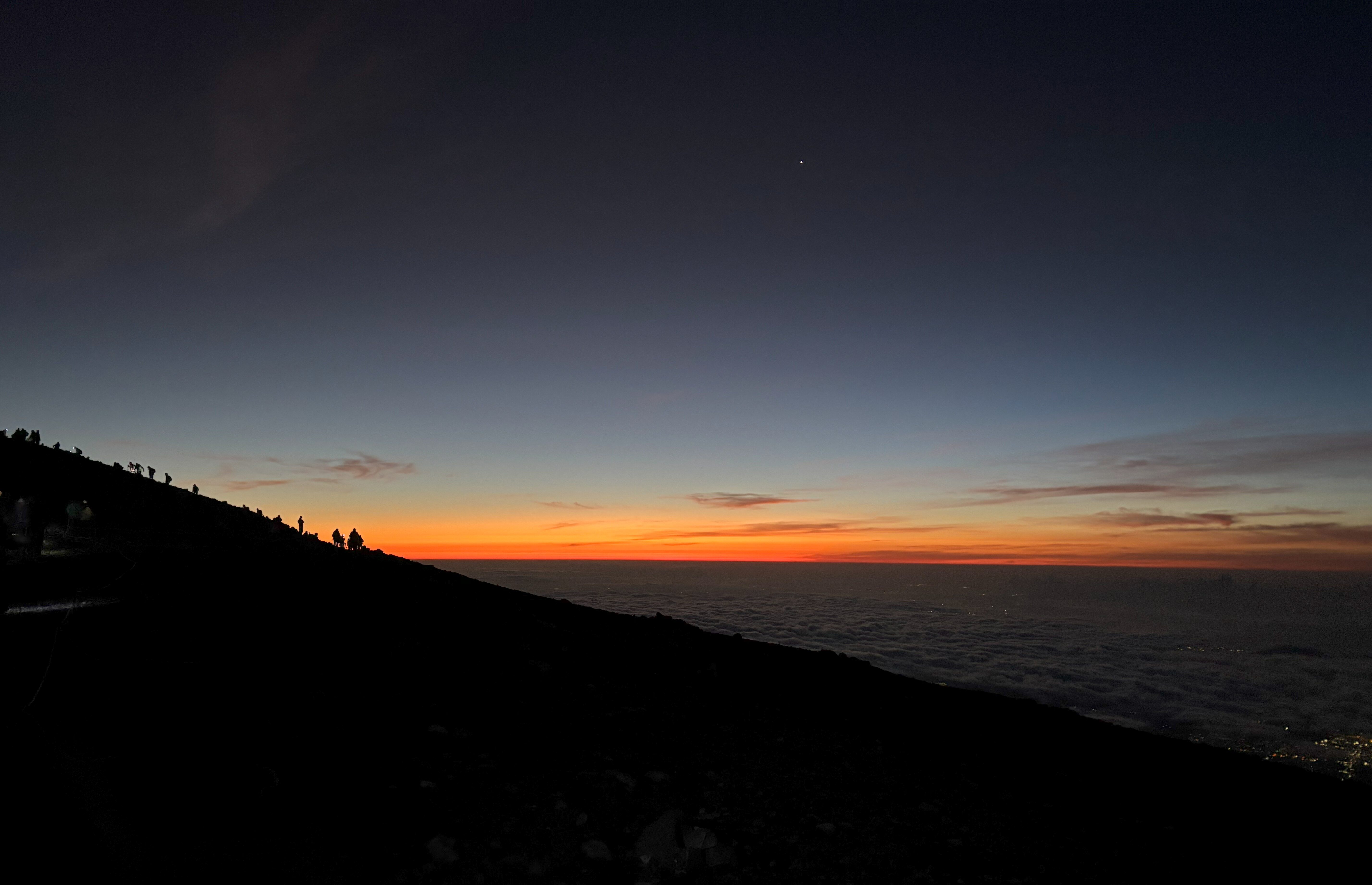 日が昇るまで1時間ほどあったため、ご来光を拝む場所を探したり、軽食を食べたりして過ごしていましたが、想像以上の寒さに震えました。