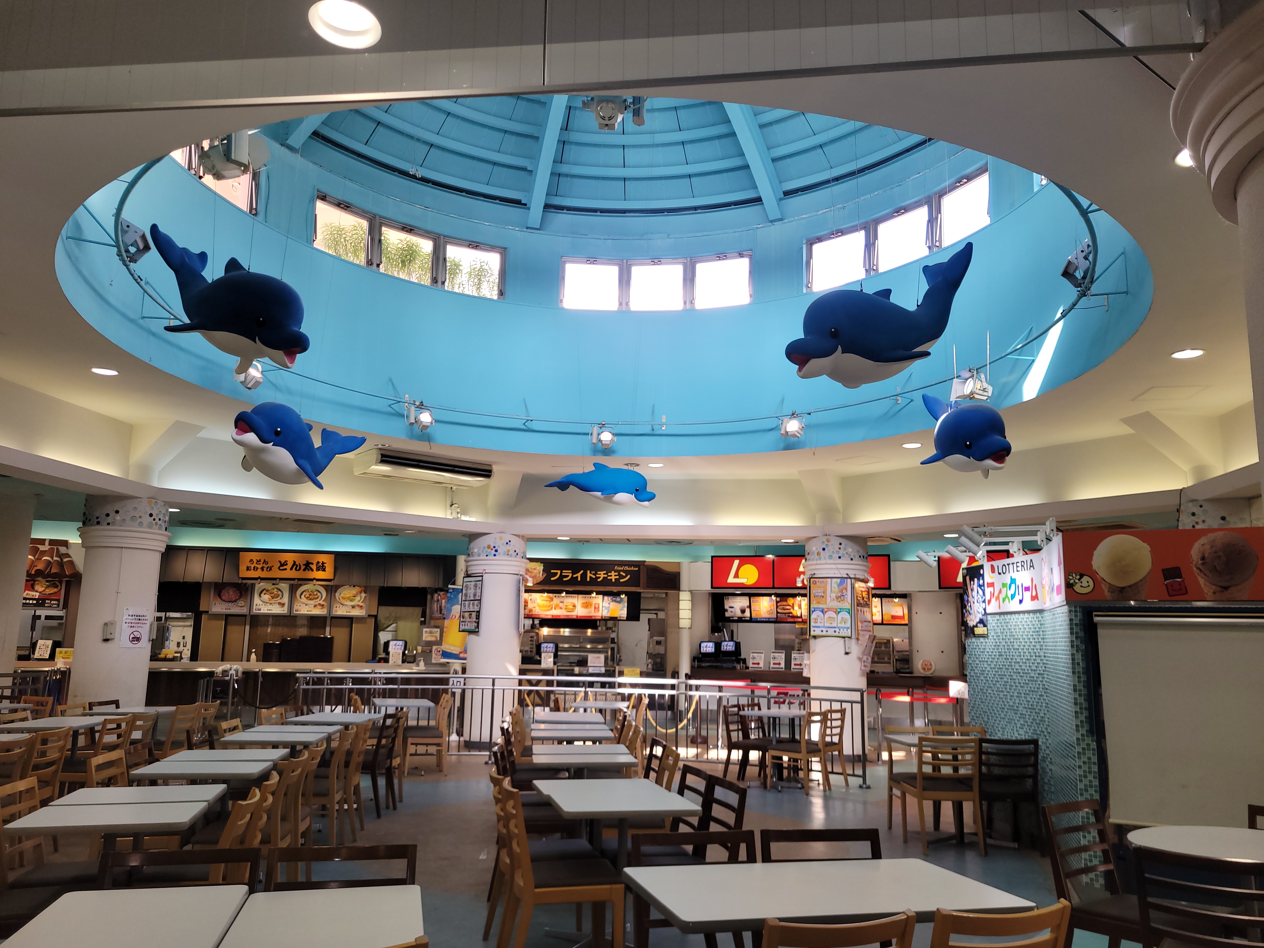 (天井のイルカ、昔のWindowsのしゃべるイルカに似てると思いました…)